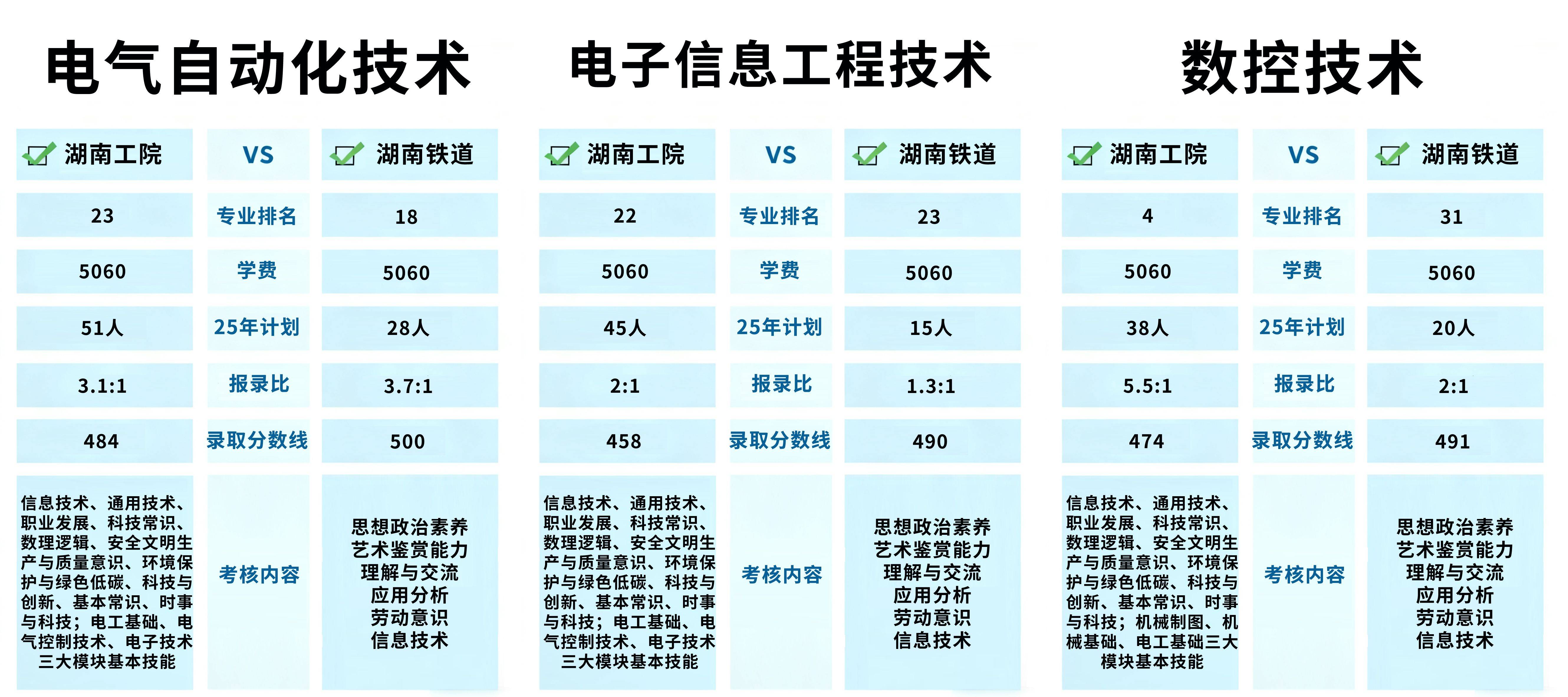 可冲刺湖南铁道的电气从动化手艺、数控手艺。霸占专业技术模块;两所院校实力半斤八两,学生能快速接触行业一线内容。做为湖南公办高职中的佼佼者!